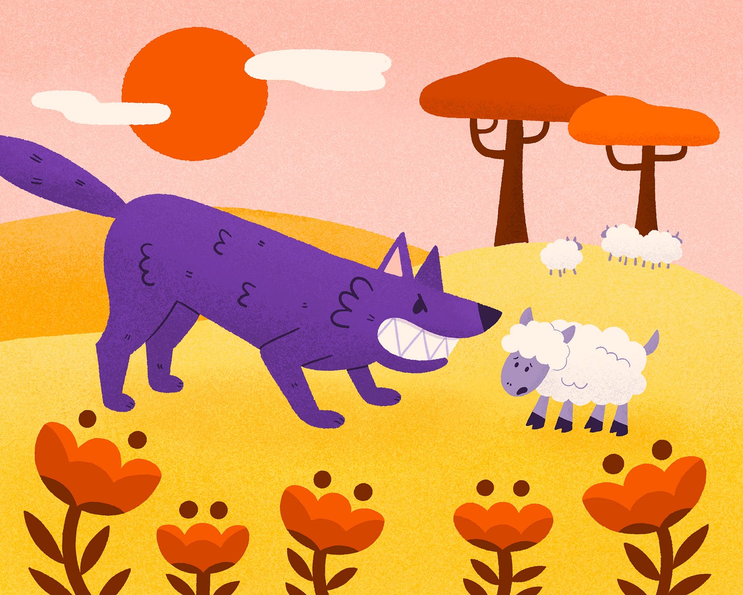 One day, a wolf noticed a lamb astray from his flock—an easy target. But the wolf did not want to outright jump this lamb. Instead, he decided to address the lamb directly and justify his right to kill him. The wolf approached him.
