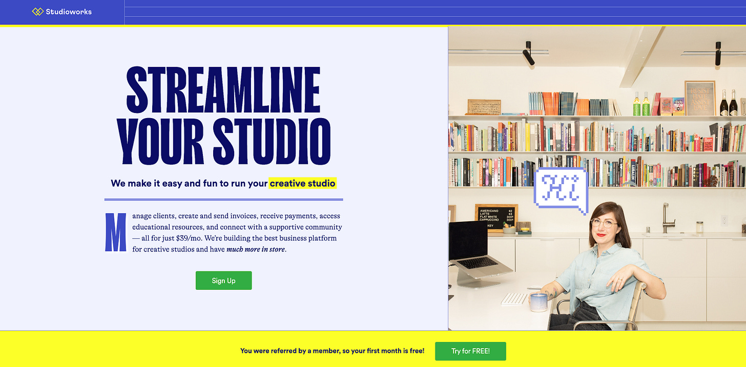 If you missed my spiel from last time (sorry to repeat this otherwise!), Studioworks is an invoicing and business management system for creatives founded by lettering extraordinaire, Jessica Hische. I joined earlier this year and got Founding Member status, which thus bestowed upon me a referral link that you may use to try the product for FREE for a month. If you decide to convert to a paying member, you help me out by giving me a month for free, too (thank you!). The company doesn’t do free trials any other way, so if you’ve been curious about their product, please sign up!